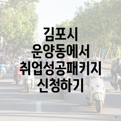 김포시 운양동에서 취업성공패키지를 신청하면 많은 혜택과 지원을 받을 수 있어요. 신청 방법이 간단하고, 여러 가지 지원이 제공되므로 적극적으로 활용해 보세요.