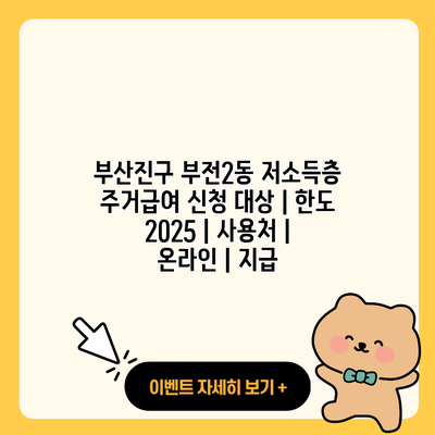 부산진구 부전2동 저소득층 주거급여 신청 대상