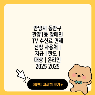안양시 동안구 관양1동 장애인 TV 수신료 면제 신청 사용처 | 지급 | 한도 | 대상 | 온라인 2025 2025